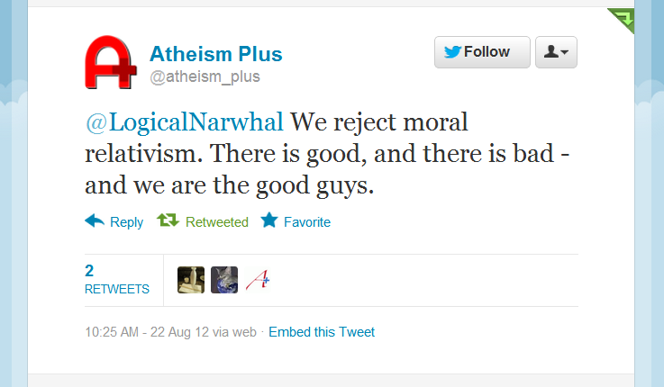 definition.jpg https://twitter.com/atheismplus/status/237889280997998592 There's my retweet! :lol: As far as I can tell, it's a parody account. A lot of it is hit or miss, which makes it almost seem like they're being serious. The thing that gives it away, however, is the lack of actual baboons fol...