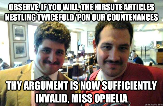 Aww, does your pussy hurt? Did we not kiss your ass, pat you on the bum, and treat your fee-fees with appropriate care? Did I do a horrible mean thing like go collect fucking data? HOW SIMPLY AWFUL OF ME.John Greg wrote:But no, instead I get snark, insults, belligerence, and basically, Why you so stupid? Why you knot take course in 'net tech? Why you not know everything I know? Why you so stupid? Why you knot meee?